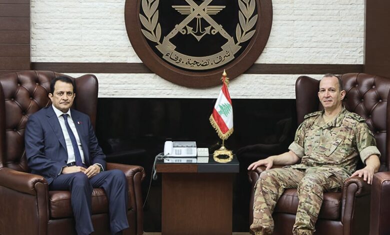 أشاد قائد الجيش اللبناني العماد رودولف هيكل بجهود دولة قطر ودعمها الدائم والمستمر للجيش اللبناني فضلا عن وقوفها الى جانب لبنان واستقراره وازدهاره. جاء ذلك خلال اجتماعه مع سعادة الشيخ سعود بن عبد الرحمن آل ثاني، سفير قطر في لبنان وتناول البحث الأوضاع العامة في لبنان والمنطقة. وثمن العماد هيكل حرص قطر على الوقوف إلى جانب لبنان وتقديم المساعدات للجيش اللبناني في ظل الظروف الراهنة. من جهته أكد سعادة السفير استمرار دعم قطر للبنان في مختلف المجالات وخصوصا الجيش اللبناني والمؤسسة العسكرية. على صعيد آخر استقبل سعادة الشيخ سعود بن عبد الرحمن في مقر السفارة أمس سعادة بلال قبلان سفير لبنان لدى قطر، في زيارة تعارف قبل استلام مهام عمله في الدوحة. وجرى استعراض الأوضاع العامة والعلاقات الثنائية.