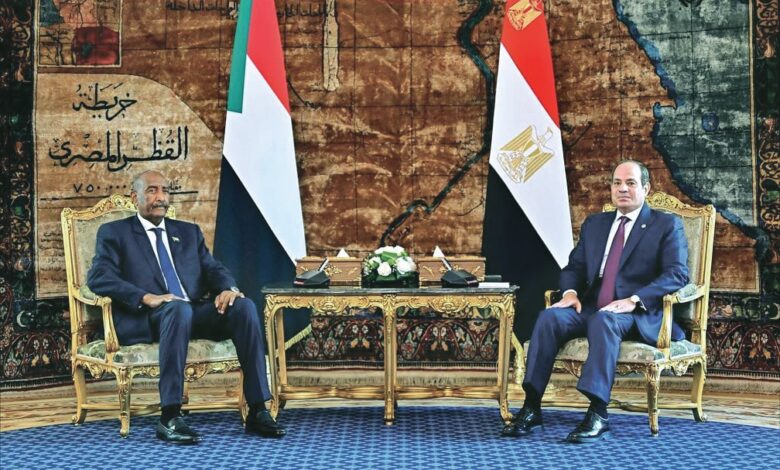 بحث الرئيس المصري عبدالفتاح السيسي، أمس، مع الفريق أول ركن عبدالفتاح البرهان رئيس مجلس السيادة الانتقالي بالسودان، في القاهرة، تطورات الأوضاع في السودان، والجهود الدولية والإقليمية الرامية لوقف الحرب وتحقيق الاستقرار، إلى جانب مستجدات ملف مياه النيل. وأفادت الرئاسة المصرية، في بيان، بأن السيسي أكد، خلال اللقاء، دعم بلاده الكامل لوحدة السودان وسيادته وسلامة أراضيه، ورفضها القاطع لأي محاولات من شأنها تهديد أمنه أو النيل من تماسكه الوطني أو تشكيل أي كيانات حكم موازية للحكومة السودانية. كما جرى التأكيد على أهمية الآلية الرباعية كمظلة للسعي لتسوية الأزمة السودانية ووقف الحرب وتحقيق الاستقرار، حيث أعرب الرئيسان عن التطلع لأن يسفر اجتماع الآلية الرباعية الذي سيعقد في واشنطن خلال أكتوبر الجاري عن نتائج ملموسة لوقف الحرب وتسوية الأزمة.