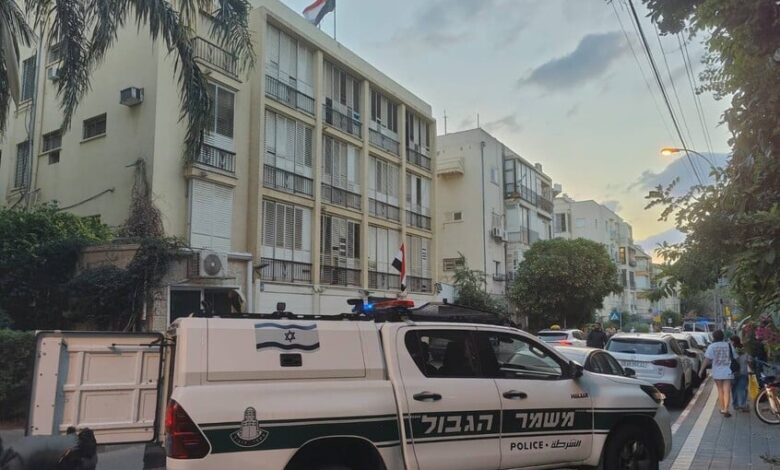 وصرح المتحدث باسم الشرطة الإسرائيلية، بحسب روسيا اليوم، أن شرطيا يعمل حارسا في السفارة المصرية بتل أبيب أطلق النار على مركبة مشبوهة كانت تقترب من مبنى السفارة.