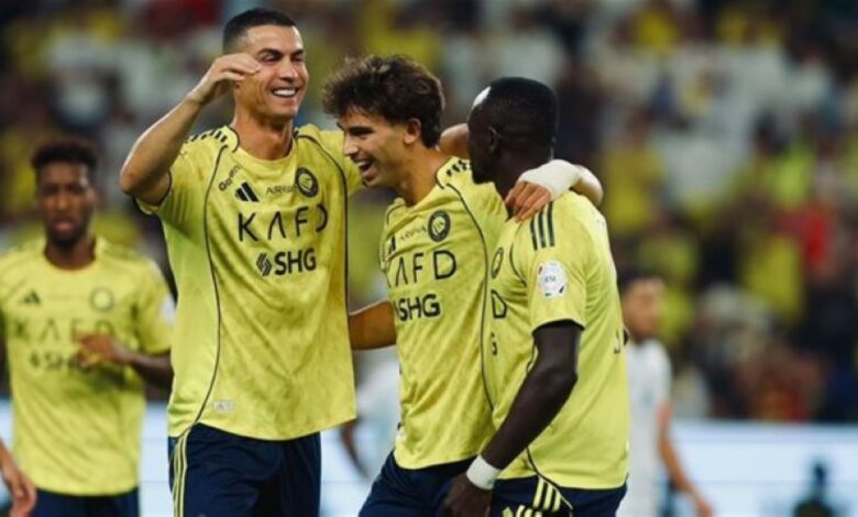 عادل البرتغالي جواو فيليكس، لاعب النصر، إنجاز مواطنه وزميله كريستيانو رونالدو في دوري روشن السعودي.