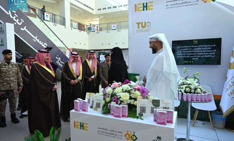 واطلع أمير منطقة عسير على ما تقدمه الجهات المشاركة خلال المعرض المصاحب للملتقى. كما استمع إلى تجارب الحوكمة المؤسسية للجامعات والجهات المشاركة، وأدوات التحول الرقمي، ورفع كفاءة الإنفاق، ومبادرات تحسين البيئة الجامعية وجودة الحياة، بالإضافة إلى منصات الشراكات والابتكار المؤسسي، في عرضٍ تفاعليٍ يعكس واقع الممارسات المؤسسية داخل منظومة التعليم الجامعي.