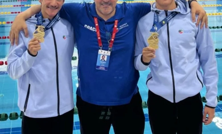 After 40 years since he participated as a swimmer in the Gulf Games in Riyadh in 1984 at the Prince Faisal bin Fahd Olympic Complex, the technical director of the Kuwaiti Swimming Federation, Sultan Al-Otaibi, returned to the same pool but this time accompanied by his twin sons, Khaled and Mohammed (18 years old), who are participating on behalf of Kuwait in the swimming competitions of the Islamic Solidarity Games – Riyadh 2025.