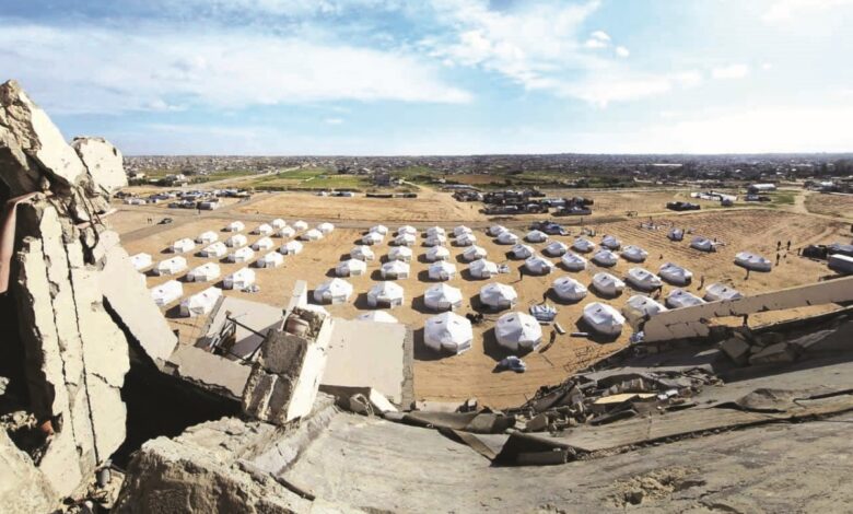 ضمن جهودها الإغاثية المتواصلة لدعم أهالي القطاع، شرعت اللجنة القطرية لإعادة إعمار غزة في إنشاء وتجهيز «مخيم قطر» بمدينة سمو الشيخ حمد بن خليفة آل ثاني السكنية جنوب مدينة خانيونس، وذلك بالتعاون مع مؤسسات أممية ومحلية. ويقام المخيم على مساحة تُقدّر بنحو( 120 دونمًا)، ويضم أكثر من ( 900 خيمة) مخصصة لإيواء مئات العائلات التي تشمل أكثر من ( 5,500) فرد ممن تتعرض خيامهم للغرق على شاطئ البحر نتيجة المنخفضات الجوية والمد البحري، إضافة إلى العديد من سكان مدينة حمد الذين تهدّمت منازلهم وفقدوا المأوى.