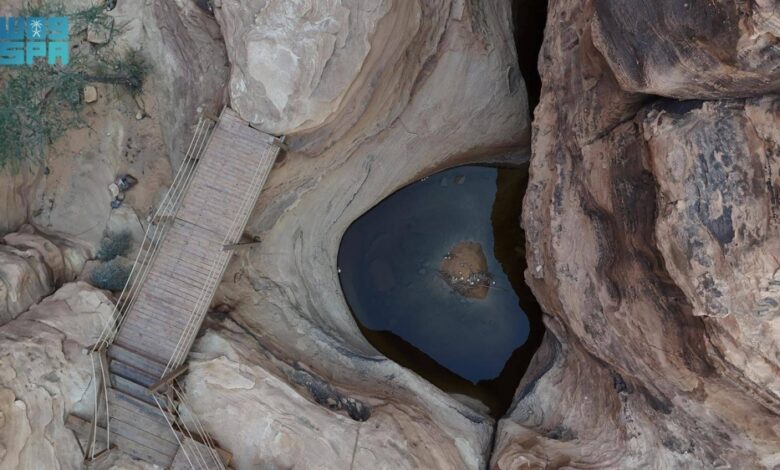تُعد التجاويف الصخرية المنتشرة في مواقع متفرقة من العُلا من الظواهر الطبيعية التي أسهمت في حفظ مياه الأمطار لفترات طويلة، بفضل تكوينها الجيولوجي وقدرتها على تجميع المياه داخل تجاويف صخرية طبيعية.