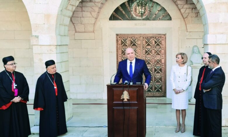 وجاء حديث الرئيس عون قبل مشاركته في قداس عيد الميلاد في بكركي الذي ترأسه البطريرك الماروني مار بشارة بطرس الراعي لمناسبة عيد الميلاد. وقال عون اريد ان أعايد جميع اللبنانيين وأقول لهم ان شاء الله نشهد السنة المقبلة ولادة لبنان الجديد، لبنان- دولة المؤسسات لا دولة الأحزاب، لا دولة الطوائف، ولا دولة المذاهب، دولة الشفافية والمحاسبة. من المؤكد في هذا العيد، هناك جرح نازف في الجنوب ولم يعد أهلنا اليه بعد، فيما لا يزال اسرانا في السجون الإسرائيلية، ولا تزال هناك اعتداءات آخرها اليوم في الجنوب والبقاع. ان شاء الله نشهد ولادة لبنان الجديد وننتهي من الحروب ونعيش السلام».