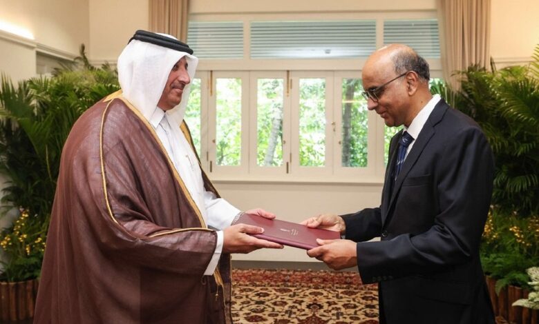 رئيس جمهورية سنغافورة يتسلم أوراق اعتماد سفير قطر