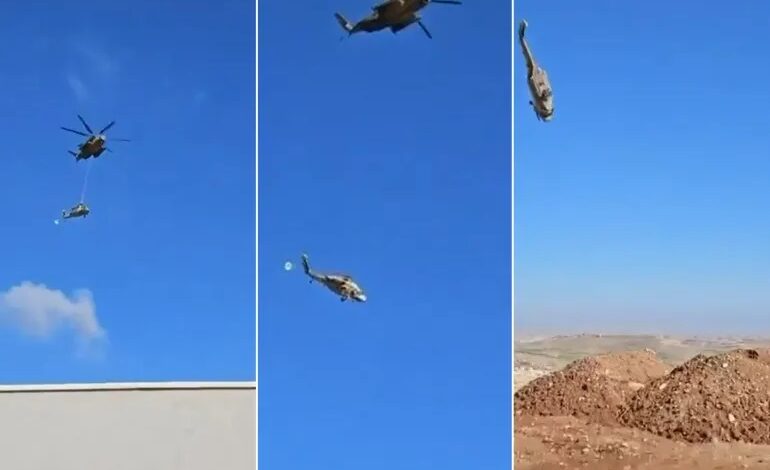 وقال الجيش الإسرائيلي – وفق الجزيرة – إن المروحية انفصلت وتحطمت في أثناء محاولة سحبها بعد تعطلها خلال الأسبوع في لواء عتصيون.