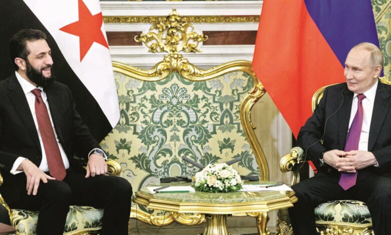 وخاطب بوتين الشرع خلال استقباله أمام الصحفيين «تابعنا عن كثب جهودكم من أجل استعادة وحدة أراضي سوريا، وأود أن أهنئكم على الزخم الذي تكتسبه هذه العملية»، مضيفا «لطالما دافعنا عن استعادة وحدة أراضي سوريا، وأنتم تعلمون ذلك، ونحن ندعم جهودكم كافة في هذا الاتجاه».