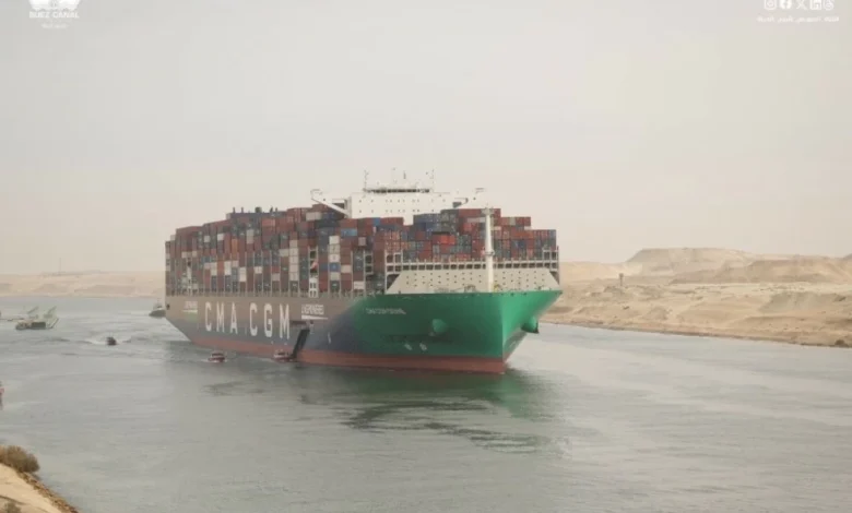 سفينة حاويات فرنسية عملاقة تعبر قناة السويس في رحلتها الأولى