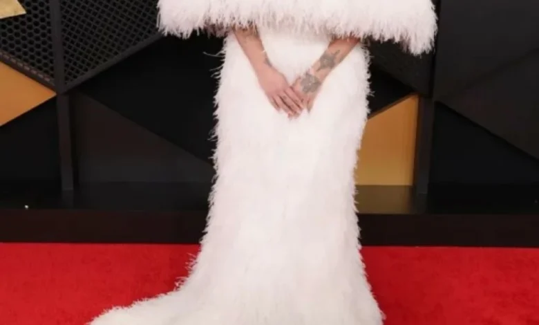 عندما نتحدث عن إطلالات لا تُنسى في الغرامي، لابد من البدء بليدي غاغا. النجمة ظهرت بفستان أسود درامي مغطى بالريش، مع ياقة عالية وذيل طويل، مظهر يعطي إحساساً بالقوة والهيبة والسحر المسرحي. الإطلالة لم تكن فقط أزياء بل تصريح فني كامل جمع بين الغموض والدراما على السجادة.