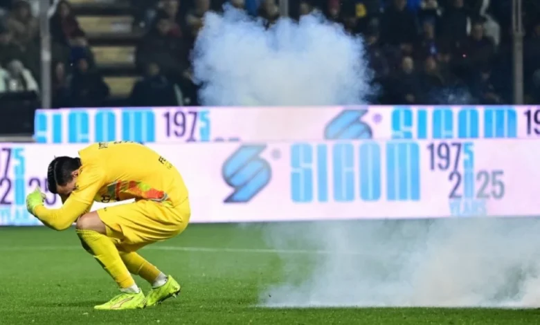 The goalkeeper of Cremonese, Italian Emil Audero, who is on loan from Inter Milan, sustained minor injuries to his right leg and superficial burns, in addition to complaining of ringing and pain in his right ear after being struck by a firework thrown from the stands of the visiting fans around the 50th minute.