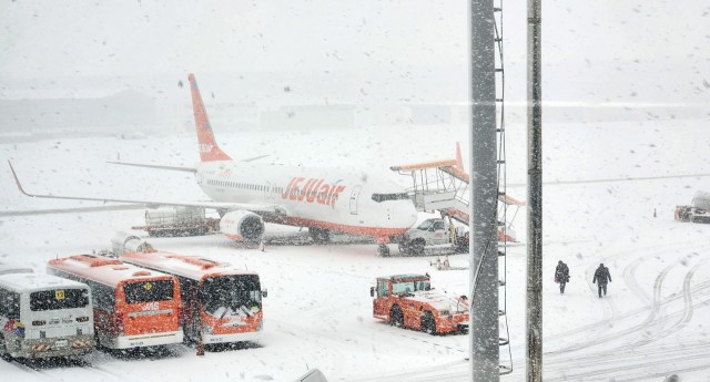 تسبب تساقط الثلوج الكثيف في تعليق الرحلات الجوية بـ /مطار جيجو الدولي/ في كوريا الجنوبية اليوم، ما تسبب في تقطع السبل بنحو 11 ألف مسافر، وفقا لما ذكرته الشركة المشغلة للمطار.