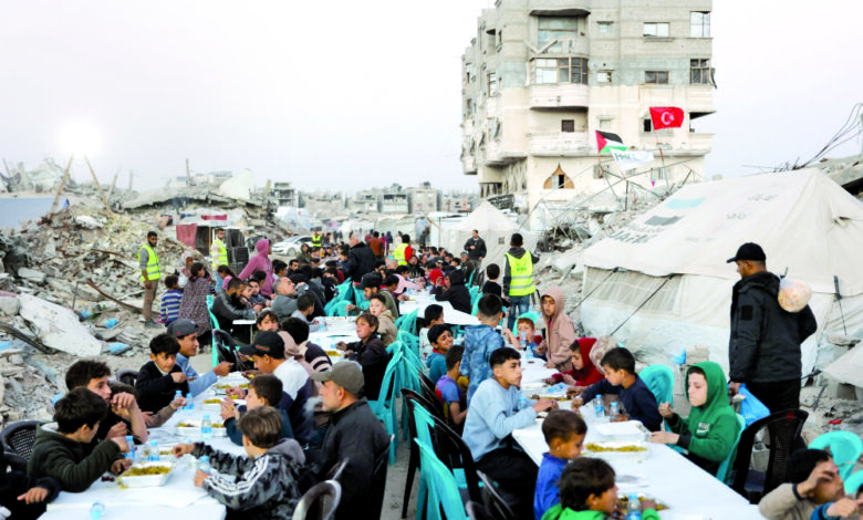 تزينت خيام النازحين في قطاع غزة بفوانيس رمضان المضيئة وحبال الزينة الملونة الممتدة بين آلاف الخيام وأنقاض المنازل وهم يستقبلون شهر رمضان بعد عامين من الحرب الإسرائيلية. ومنذ الإعلان ليل الثلاثاء عن بدء شهر الصوم، تجمّع عشرات الفلسطينيين من سكان القطاع في ميدان السرايا بغرب مدينة غزة، والتقطوا الصور بجانب فانوس ضخم مضيء، وجالوا بين المتاجر التي أبقت أبوابها مفتوحة إلى ما بعد منتصف الليل لاستقبال الزبائن. ورفعت في الشوارع بعض الزينة، ومنها فوانيس حمراء علّقت بجانب هلال أصفر، بحسب صحفيين في وكالة فرانس برس.وتجمّع عشرات المصلّين في المسجد العمري في المدينة لأداء صلاة التراويح، في الليلة الرمضانية الأولى التي تحلّ منذ سريان وقف إطلاق النار بين إسرائيل وحماس في 10 أكتوبر، بعد عامين من الحرب التي ألحقت دمارا هائلا بالقطاع وفرضت على سكانه أزمة إنسانية كارثية. ومن بينهم، معاوية كشكو الذي قال إن «شهر رمضان يختلف هذا العام… لم نكن نجرؤ العام الماضي على مغادرة المنزل للصلاة في المسجد خلال الحرب».