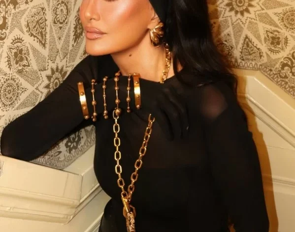 اللمسات الذهبية لم تكن مجرد إضافة، بل عنصرًا أساسيًا أكمل المشهد البصري، وعزّز عمق اللون الأسود، ليبدو اللوك متوازنًا ومترفًا في آنٍ واحد.