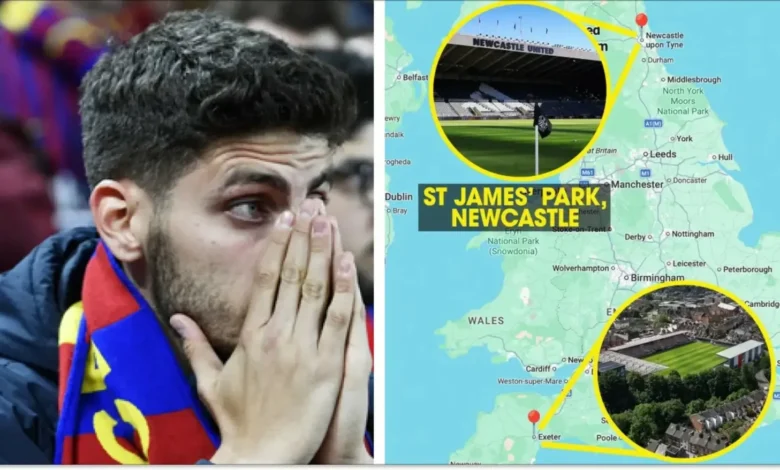 According to the British newspaper “The Guardian,” a mistake in direction on the GPS system of one Barcelona fan turned into an unexpected adventure, as he aimed to attend the match at St. James’ Park, but ended up 366 miles away from the correct location.
