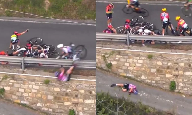 Silvestri fell while trying to avoid other cyclists who had fallen in front of her during one of the descents, as she crashed over the barrier before hitting the asphalt several meters away, during the race held on Saturday.