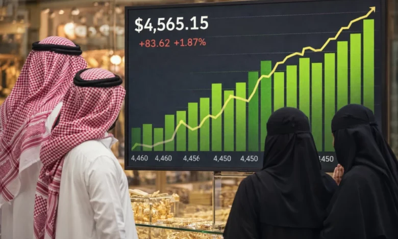 يعكس ارتفاع الذهب ارتباط السوق المحلية بالأسعار العالمية، إذ تتحرك الأسعار في المملكة بشكل مباشر مع الأونصة العالمية، مع إضافة تكاليف التصنيع والتوزيع.
