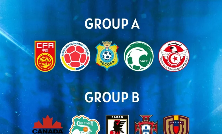 The organizing committee for the tournament confirmed that the participating teams have been divided into two groups, with the Saudi team placed in Group A alongside China, the Democratic Republic of the Congo, Colombia, and Tunisia, while Group B includes teams from Japan, Ivory Coast, Canada, Portugal, and Venezuela.