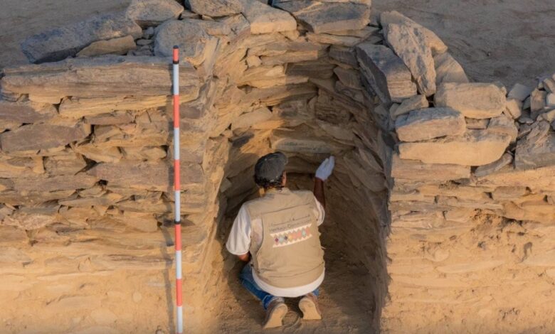 وأسفرت أعمال التنقيب الميداني عن الكشف عن عدد من المعالم المعمارية واللقى الأثرية التي تعكس طبيعة الحياة في الموقع خلال الفترات التاريخية التي ازدهر فيها، ومن أبرز المكتشفات مسجد أثري تبلغ مساحته نحو «11×12م»، يضم محرابًا وثلاثة مداخل رئيسة، إضافة إلى قواعد مربعة لأعمدة كانت تحمل سقف المسجد، ما يشير إلى تخطيط معماري واضح يعكس أهمية المسجد ودوره المحوري في تخطيط المدن الإسلامية المبكرة.